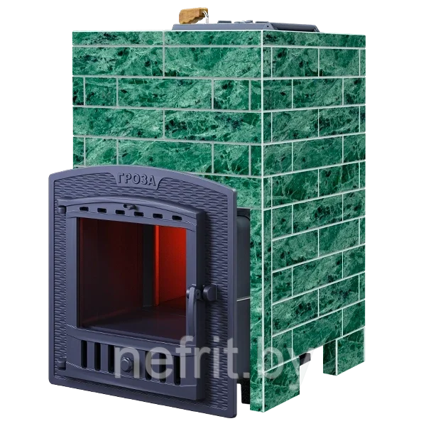 Чугунные банные печи GROZA — это современные печи, рассчитанные на малые и средние размеры парных. Печь имеет прочную сборную конструкцию, без резьбовых и сварных соединений, детали выполнены из легированного чугуна. Топка печей GROZA состоит из двух камер, разделенных пламегасителем. Радиаторные выступы каменки, направленные вглубь топки, увеличивают площадь контакта огня с каменкой и эффективность теплосъема.