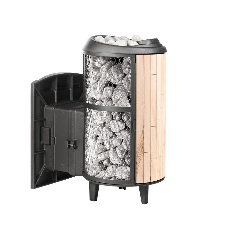 Практичная и компактная модель с комбинированной облицовкой из сетки и ламелей. Особенностью модели является открывающаяся дверь с ламелями. Это оригинальное решение технологической конструкции обеспечивает быстрый прогрев парной.