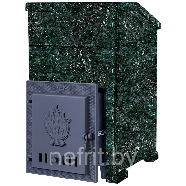GFS ЗК 25 - печь с усиленной каменкой большей массы, с единым углублением внутрь топки для дополнительной укладки чугунного заряда. Теплосъемные шипы, со стороны горения пламени, в разы увеличивают площадь соприкосновения огня с каменкой и ускоряют передачу тепла, а также способствуют лучшему дожигу смешивая потоки пламени и воздуха поступаемого из воздушника. Эти усовершенствования значительно повышают мощность парообразования печи и выдают большее количество пара при непрерывной подаче воды. Каменка печей GFS-ЗК является незаливаемой.
