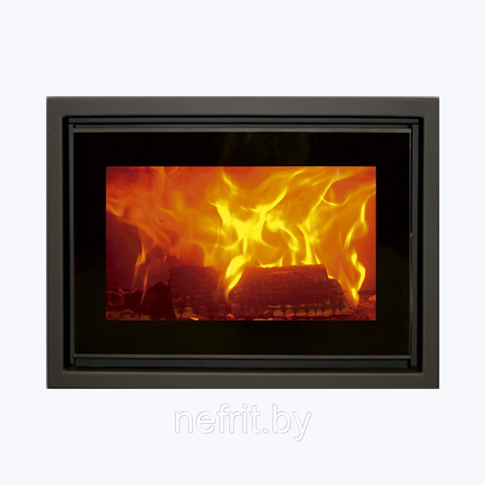 Каминная топка Panadero Hogar F-720-S помимо стильного современного дизайна отличается технологичностью. У камина большая топочная камера и внушительных размеров стекло. Но при этом печь позволяет с относительно небольшой закладки дров получить большой красивый огонь. И напротив, если необходимо прогреть помещение, печь способна отопить комнату объемом до 210 м3. Отзывчивость на регулировки и способность хорошо гореть при минимальной подаче воздуха достигается за счет футеровки топочной камеры вермикулитом, а также правильно спроектированной подачи воздуха. Воздух в топку попадает через патрубок диаметром 80мм, расположенный в задней нижней части корпуса, к которому можно подвести воздуховод с улицы. Далее воздух проходит внутри канала по задней стенке токи и частично попадает в топочную камеру через отверстия вторичного дожига. Далее воздух проходит внутри канала, расположенного в верхней части токи, где максимально прогревается, и только потом сильно разогретый воздух попадает на стекло. Благодаря такому сложному каналу подачи воздуха топочная камера очень хорошо прогревается и сажа не оседает на стекле, происходит более полное сжигание топлива. Именно поэтому нет необходимости делать огромные закладки дров для прогрева топочной камеры.